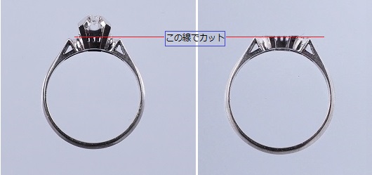 ネックチエーンを通すバチカンを付けるのにバランスの良い所から赤い線の位置で切りました。