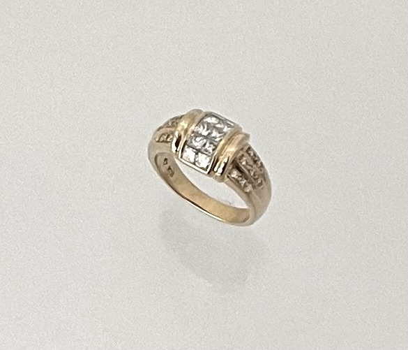 アームのメレダイヤモンドをプリンセスカッツトの横の溝を平らにして堀留にしました。