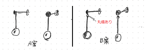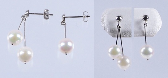 お帰りになってからその方法だとパールが揺れないことに気付いて連絡し、2個と1個に固定して揺れるようにピアスに丸環を付ける変更の了解を頂きました。(B案)