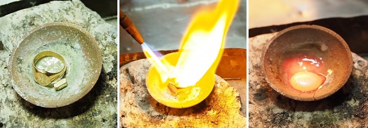 職人の所に行き、印台に約20%のK18の金を足して溶かしている写真を撮ってS様に写真を送り、間違いなく形見のリングを使ったことを報告しました。