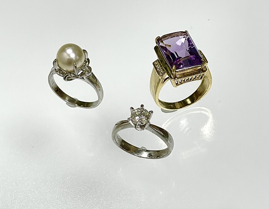 おばあさまの形見のPt900パールリングとK18アメジストリング、