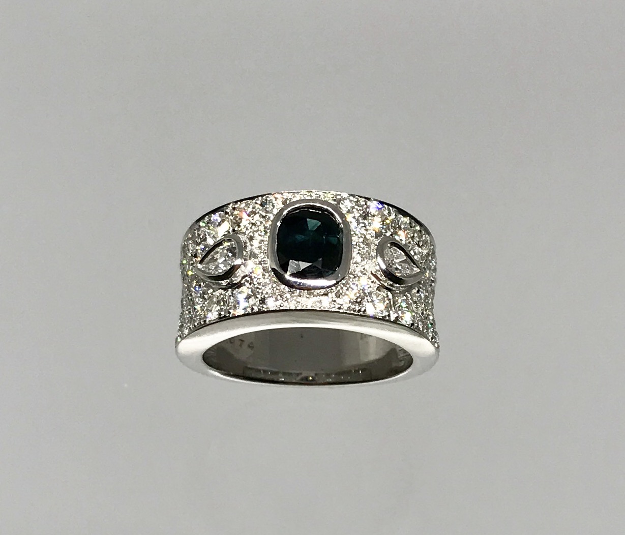 ルビーオーダーメイドリングを作られたK様が同時にお持ちになられたサファイアをセンターストーンとしてペアシェーパーカットとラウンドの小粒ダイヤモンドを周りに配したオリジナルオーダーメイドリングの制作を依頼されました。この宝石も買取に業者に持ち込んだら宝石を返されたそうです。